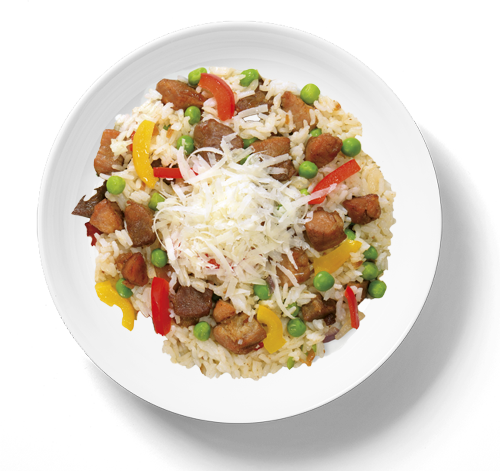 Dlouhozrnou rýži pečlivě propláchneme pod studenou vodou. V pánvi si v rozpáleném tuku orestujeme nadrobno nakrájenou cibuli dozlatova, přidáme na nahrubo pomleté, osolené a opepřené maso z vepřového plecka, slaninu nakrájenou na kostičky, orestujeme, přidáme česnek, zeleninu, podlejeme vodou, přidáme rýži a společně uvaříme přikryté pod poklicí.
